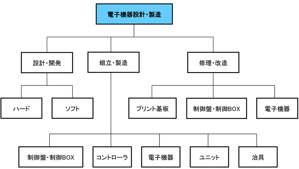制御盤及び操作盤の新規設計・製作・修理、電装機器(モータードライバー他)内の電子部品等の経年劣化による故障修理。