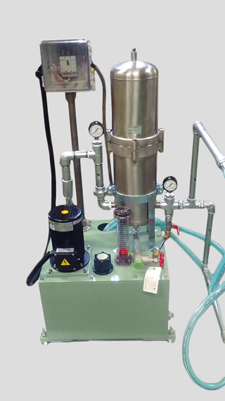 マシニングセンターや研削盤などの工作機械を用いて金属の切削や研削などを行う際、工具・被加工物が高速回転し接触するため熱を持ってしまい、その熱が原因で工具の劣化や被加工物の歪みが発生してしまうことがあります。それを防ぐために、クーラントを用いて加工時の熱を逃がしています。クーラントユニットはそのクーラントを供給→回収・ろ過→供給する装置です。